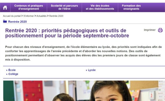 Pour chacun des niveaux d’enseignement, de l’école élémentaire au lycée, des priorités sont indiquées afin de conforter les apprentissages de l’année précédente et d’aborder les nouvelles notions. Des outils de positionnement permettant d’observer les acquis des élèves dès les premiers jours de classe sont également mis à disposition. Retrouvez l’ensemble […]
