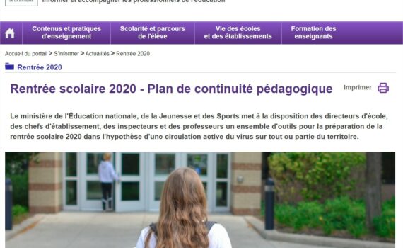 Le ministère de l’Éducation nationale, de la Jeunesse et des Sports met à la disposition des directeurs d’école, des chefs d’établissement, des inspecteurs et des professeurs un ensemble d’outils pour la préparation de la rentrée scolaire 2020 dans l’hypothèse d’une circulation active du virus sur tout ou partie du territoire. […]