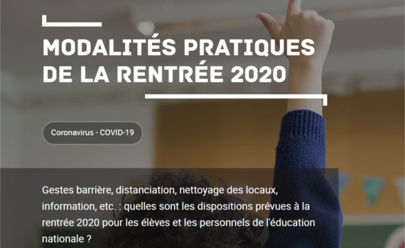 Gestes barrière, distanciation, nettoyage des locaux, information, etc. : quelles sont les dispositions prévues à la rentrée 2020 pour les élèves et les personnels de l’éducation nationale ? Retrouvez l’ensemble des informations via le lien suivant : https://www.education.gouv.fr/modalites-pratiques-de-la-rentree-2020-305259