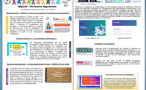 La Newsletter OTA #46 du 16 mars 2021 est en ligne. Au sommaire : Le nouveau numéro d’Edubref de l’Ifé : “De quoi sont composées les connaissances enseignantes ?” Un partage d’expériences avec les bavardages mathématiques de la circonscription de Béthune 3 Le genially réalisé par le groupe départemental “fluence” […]