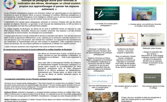 La pratique de l’escape game pédagogique: un exemple de pédagogie active pour favoriser la motivation des élèves, développer un climat scolaire propice aux apprentissages et penser les espaces autrement