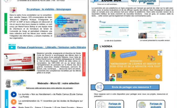 Madame Lamorille, enseignante et directrice de l’école Curie de Douvrin a accompagné ses élèves dans la mise en place d’une webradio littéraire. Avec l’aide de Mme Davoli-Luron, conseillère pédagogique de Vendin le Vieil et Mme Rusquart, ERUN de cette même circonscription, les CM1-CM2 ont pu se lancer dans l’enregistrement de […]