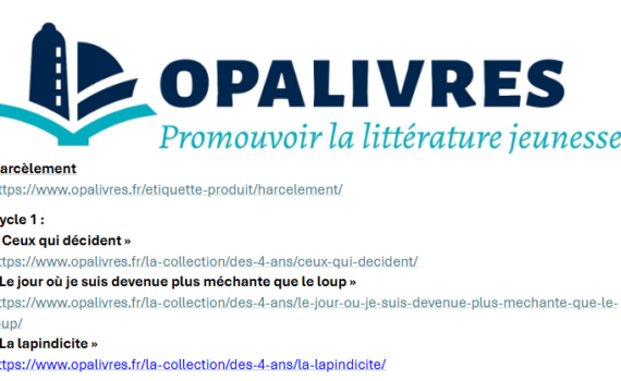 Retrouvez la liste de livres de l’association OPALIVRES, association agréée par le Rectorat de l’Académie de Lille et la Direction Départementale de la Jeunesse et des Sports.
