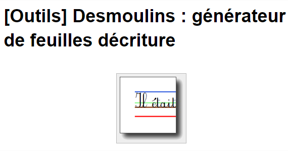 Desmoulins.fr (cliquez sur l’image) est un site qui permet de créer des feuilles de cahier d’écolier Seyes (gros carreaux) sous forme de fichier PDF.C’est un service est entièrement gratuit. Une fois la feuille téléchargée, il sera possible de l’imprimer.