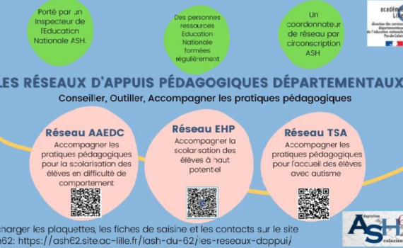 Le Pole Départemental de l’École Inclusive vous propose des temps d’échange autour de thématiques liées à l’école inclusive. Ce premier webinaire, sur la thématique des missions de l’enseignant référent pour les élèves en situation de Handicap, est accessible via le site ASH 62 ou par ce lien : https://ota62.site.ac-lille.fr/webinaire-du-pdei/