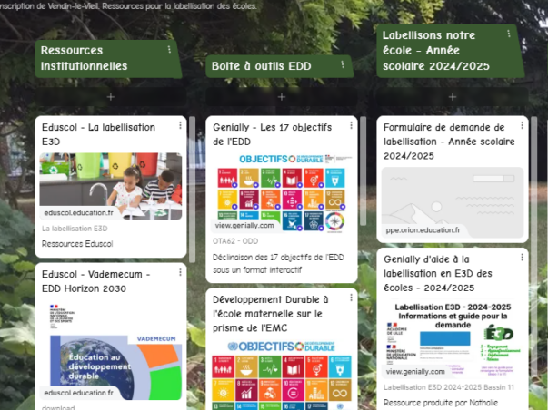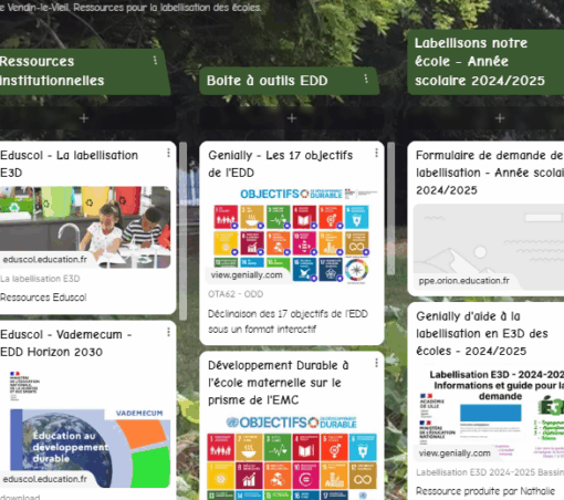 Vous trouverez dans ce padlet, toutes les informations pour la demande de labellisation E3D :