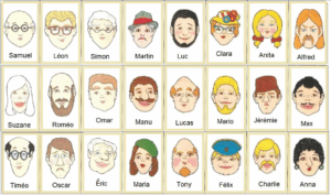 Cette séance permet de retravailler le vocabulaire des parties du visage et des couleurs à travers le jeu du « qui est-ce » (« qui qu’ch’est? »). En grammaire, on abordera la répétition du pronom après le sujet.